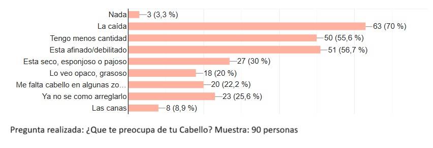 Indiscutiblemente, la caída del cabello es la preocupación principal, mencionada por casi dos tercios de quienes completaron el diagnóstico (64%).